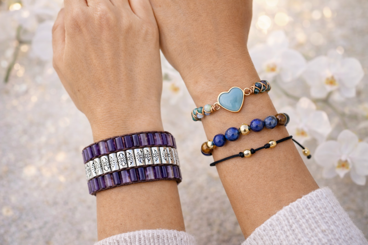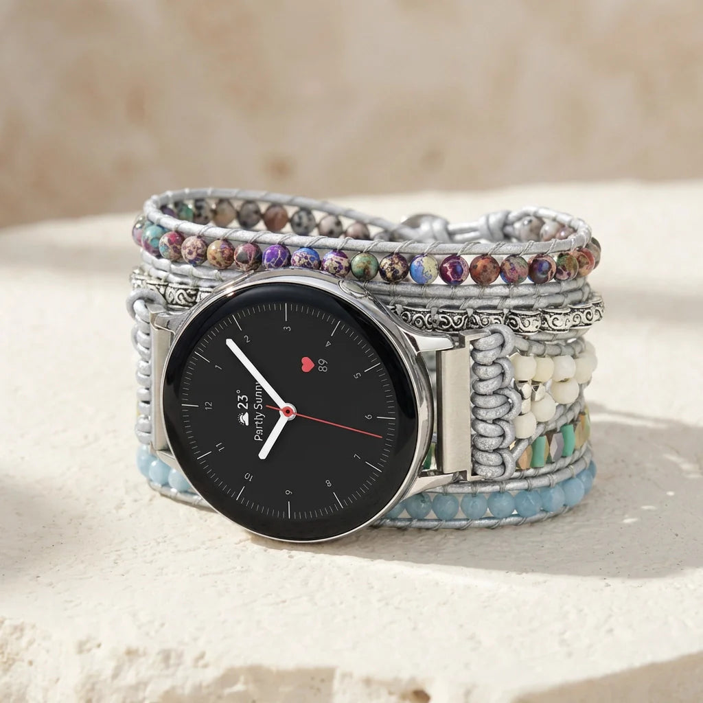 Spice up your smartwatch and enjoy the benefits of natural stones with our Smartwatch Wrap Bands! Available for Apple, Fitbit, Samsung and Fossil watches.